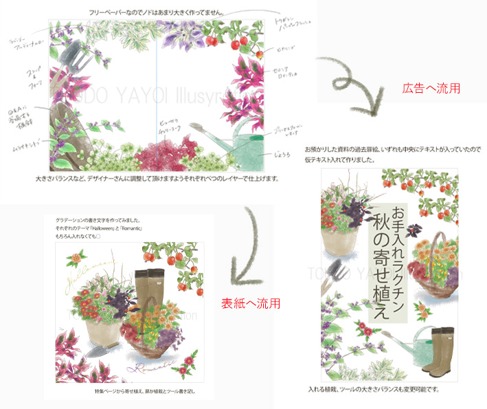 ご予算にご都合があり可能な限りイラストを流用したいとのご希望でした。