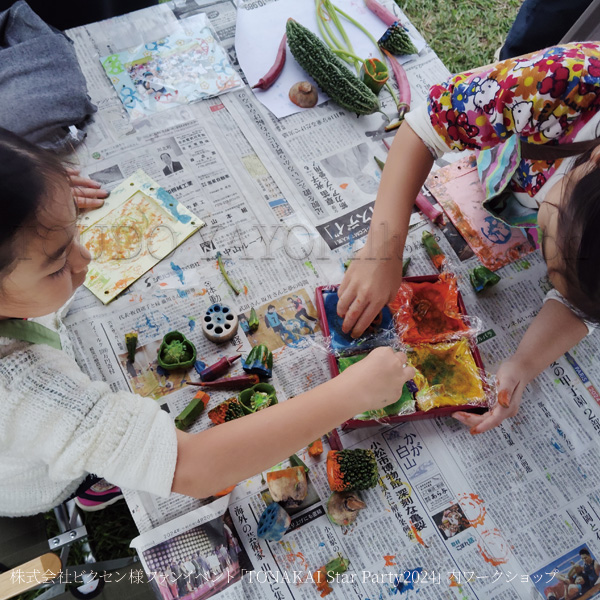 小さなお子さんには特産野菜を使用した野菜スタンプでフォトフレーム作りを。