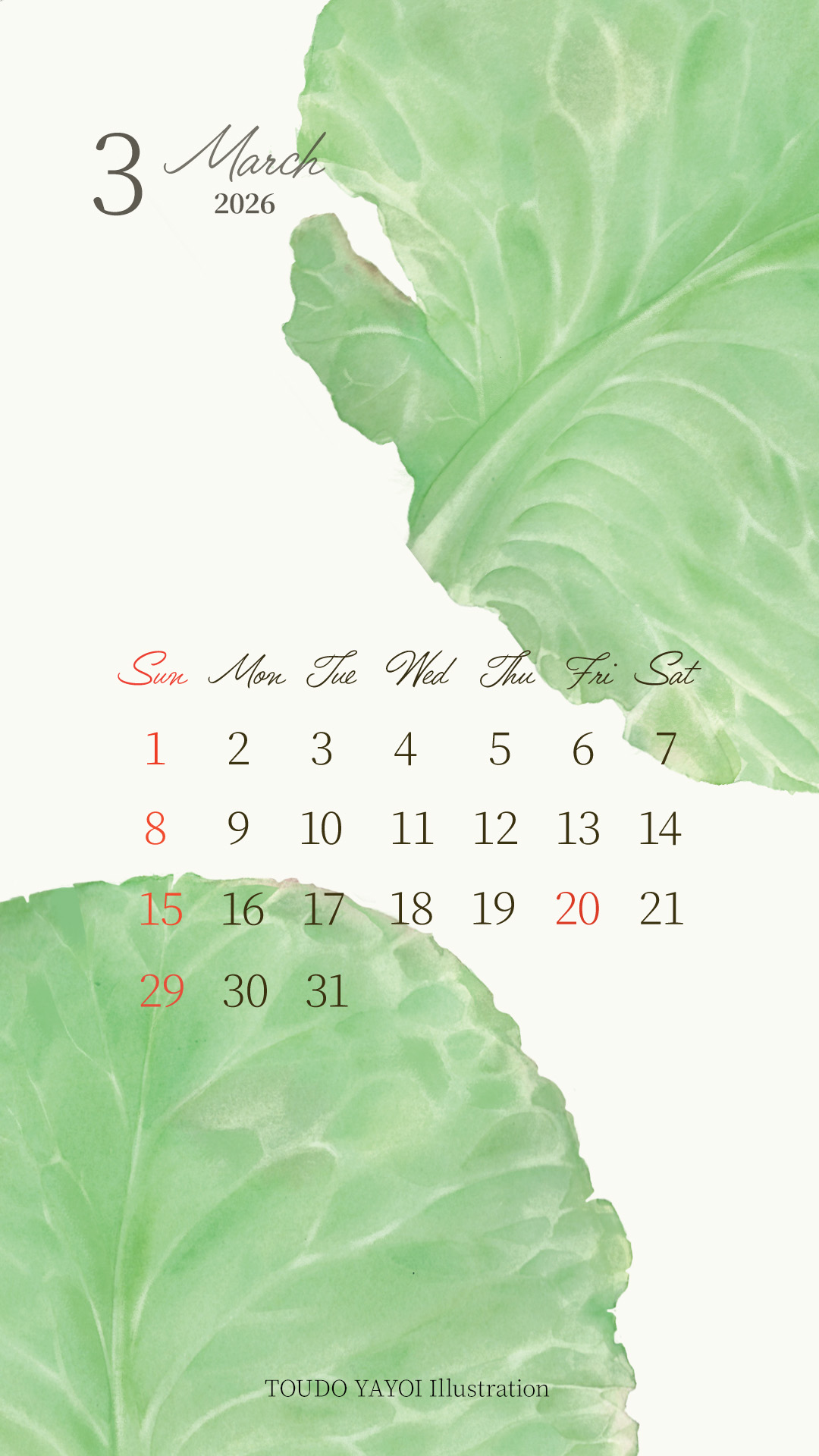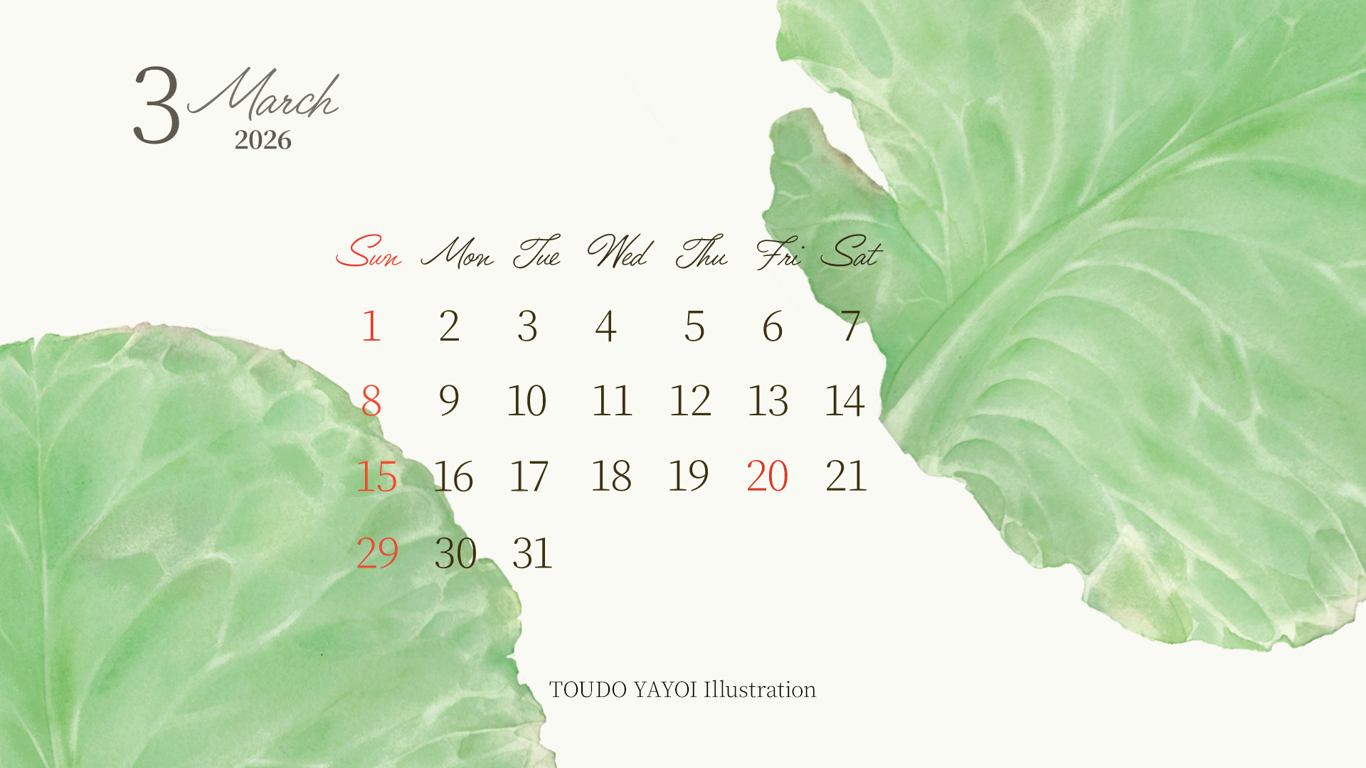 3月の壁紙カレンダーは「キャベツ」